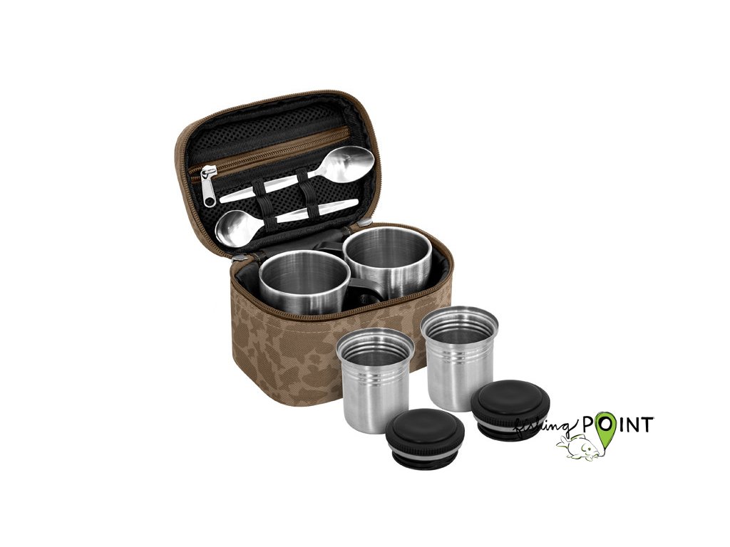 Rozměrem malý, obsahem velký - takový je Delphin COTEA. Produkt s malými transportními rozměry, díky čemuž nezabere ve výbavě téměř žádné místo. Přesto ukrývá sadu, která potěší každého, kdo si u vody rád vychutná dobrou kávu nebo teplý čaj. COTEA obsahuje dva kvalitní nerezové hrnky, dvě čajové lžičky a také dvě uzavíratelné nerezové nádobky, které poslouží například na cukr a kávu. Samotná taštička disponuje malou síťovanou kapsou, která bez problémů pojme dostatečnou zásobu čajových sáčků. Navíc je opatřena kvalitními zipy, přičemž ten vnější je vybaven praktickým držákem s logem firmy Delphin. COTEA je designované v oblíbené CARPATH kamufláži s efektním piktogramem definujícím využití tohoto zajímavého produktu.
