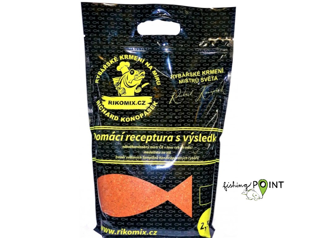 Rybářské krmení Richard Konopásek - RIKOMIX KAPR SPECIÁL ČERVENÉ V NOVÉM BALENÍ 2,5KG. UZAVÍRATELNÉ SÁČKY NEPROPOUŠTĚJÍCÍ AROMATA!Podmínky rybářských závodů všech úrovní jsou však každopádně jedním z nejúčinnějších prostředí k ověření praktické účinnosti speciálních krmných směsí a přípravků.Právě léta závodnické praxe a kvanta získaných zkušeností vedly k odladění řady směsí, které jsou koncipovány jako univerzální nebo specializované pro jednotlivé typy vod a cílové druhy ryb.Bude to možná znít divně, ale je holým faktem, že připravuji vždy ty nejlepší možné směsi pro všechny rybáře, kteří moje krmení používají. Žádné tajemstvíčka a specialitky pouze pro sebe a nějak "ošizené" krmení pro ostatní. Pro leckoho to může být těžko uvěřitelné, ale je to tak.Ze stejného balení se dělím o krmení se svými potenciálními konkurenty na závodech a stejnou směs namíchám každému rybáři, který o ně projeví zájem.