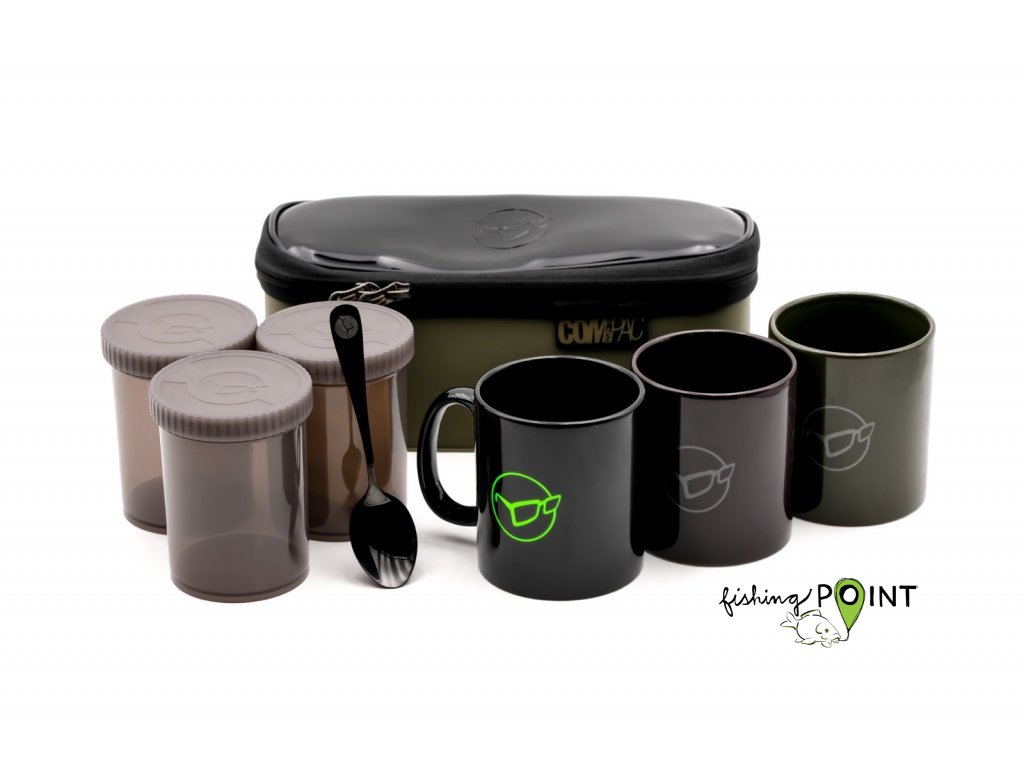 Trojdílná čajová sada Korda Compac Tea set 3 piece. Obsahuje: 3x plastová šroubovací dóza s logem Korda pro suché skladování kávy, cukru a čaje 3x hrnek s logem Korda s různým logem 1x vodotěsné pouzdro Compac 1x černě pokovovaná čajová lžička z nerez oceli a laser logem KordaDoplňkové parametry