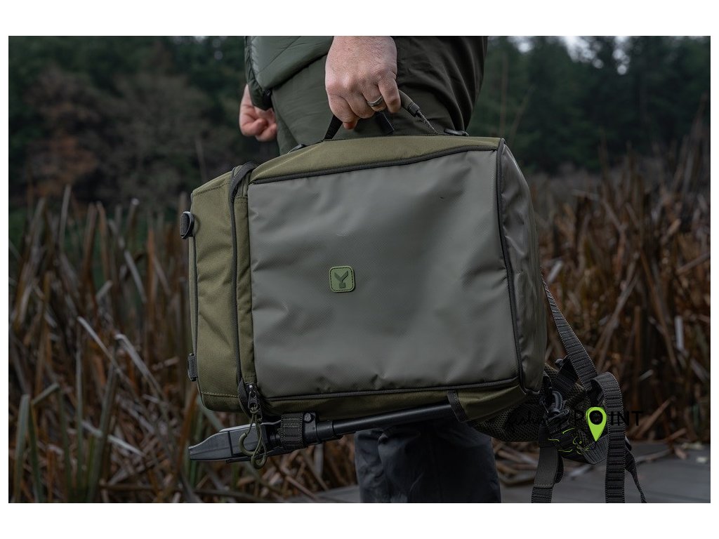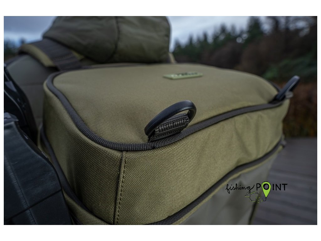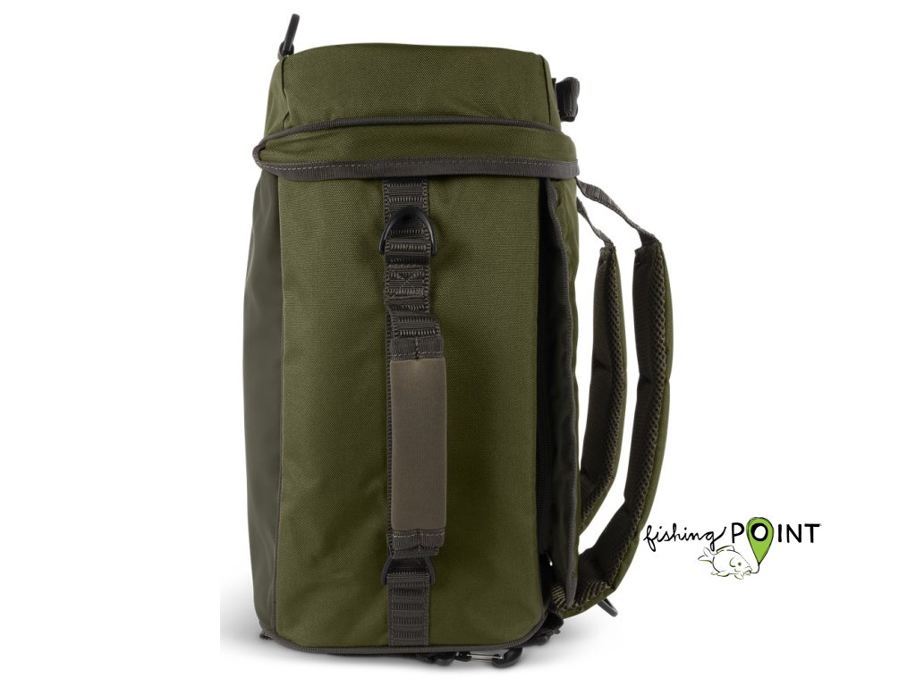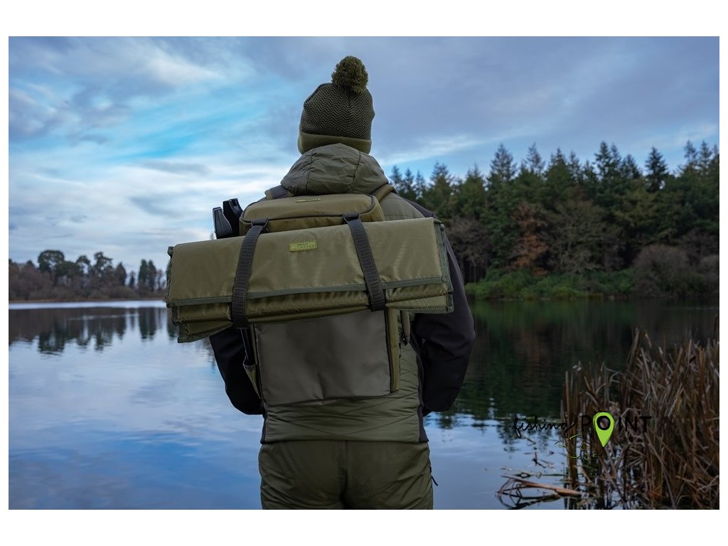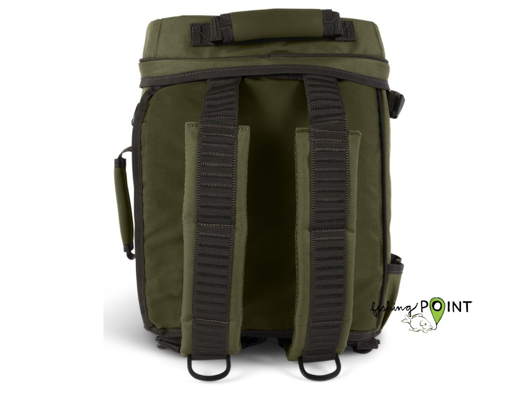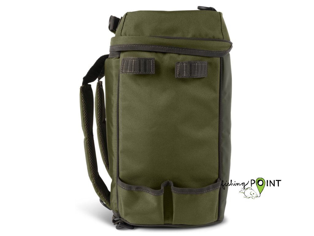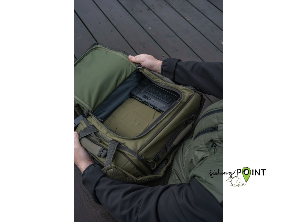 Batoh se otevírá jako Ruckbag, což usnadňuje přístup k vašemu rybářskému náčiní. Nabízí dva držáky na vidličky/podběrákovou rukojeť na boku, horní kapsu kompatibilní s Tackle Blox a mimořádně dobře polstrované ramenní popruhy.