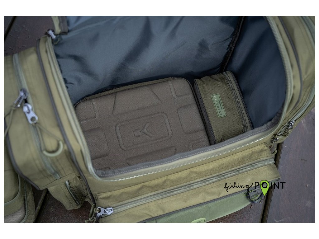 Boční a přední kapsy jsou strategicky rozmístěny a umístěny tak, aby byly maximálně použitelné, a prostorná hlavní přihrádka poskytuje dostatek místa pro váš Tackle Blox a další nezbytné věci. Nyní s delšími popruhy na horní straně batohu pro přenášení podběrákové hlavy/vidliček. Extrémně dobře polstrované ramenní popruhy jsou nastavitelné a jsou vybaveny hrudním popruhem pro zajištění bezpečnosti.