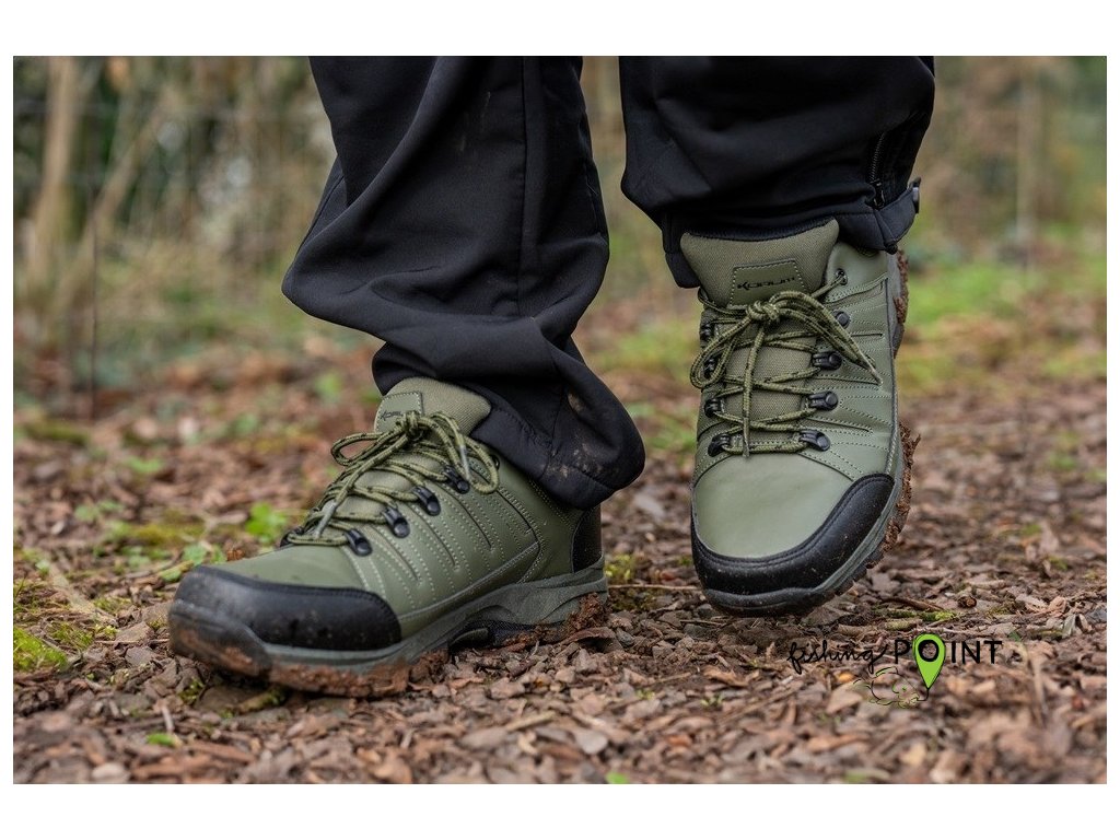 Vyrobeno pro moderní mobilní rybáře. Vysoká úroveň pohodlí v podpůrné obuvi vhodné do všech typů terénů. Svršek z PU kůže odolné proti vodě a podrážka z TPR poskytují obuv, která je funkční a lehká. Kovový šněrovací systém je zesílený pro dlouhou životnost.
