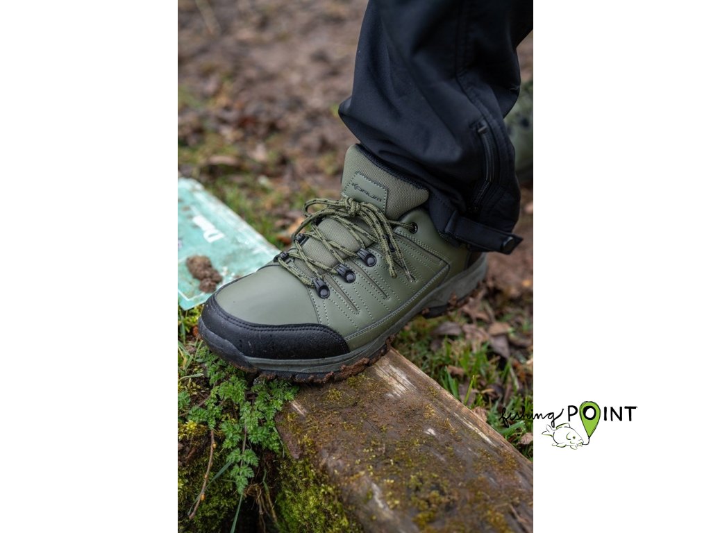 Vyrobeno pro moderní mobilní rybáře. Vysoká úroveň pohodlí v podpůrné obuvi vhodné do všech typů terénů. Svršek z PU kůže odolné proti vodě a podrážka z TPR poskytují obuv, která je funkční a lehká. Kovový šněrovací systém je zesílený pro dlouhou životnost.