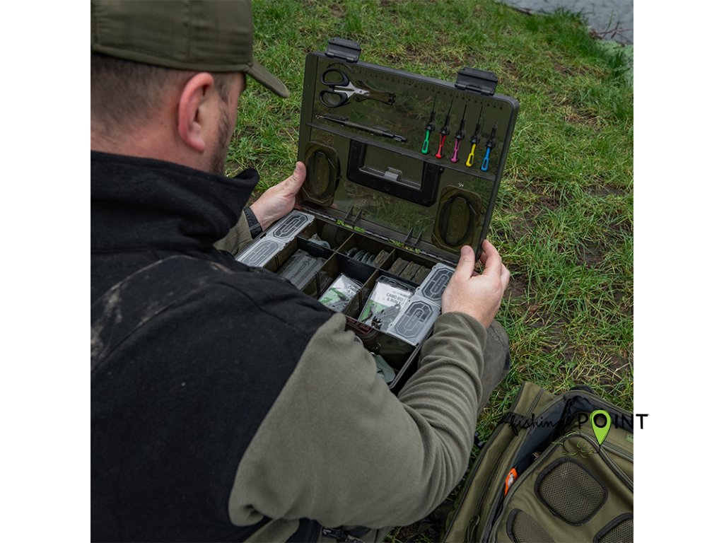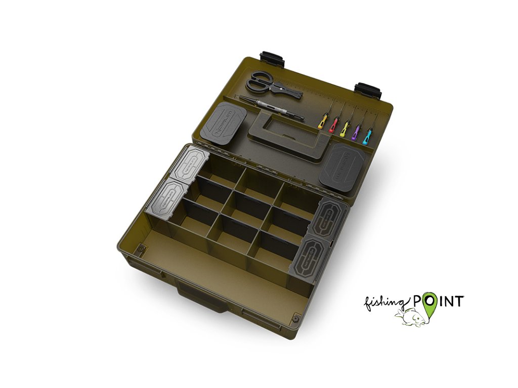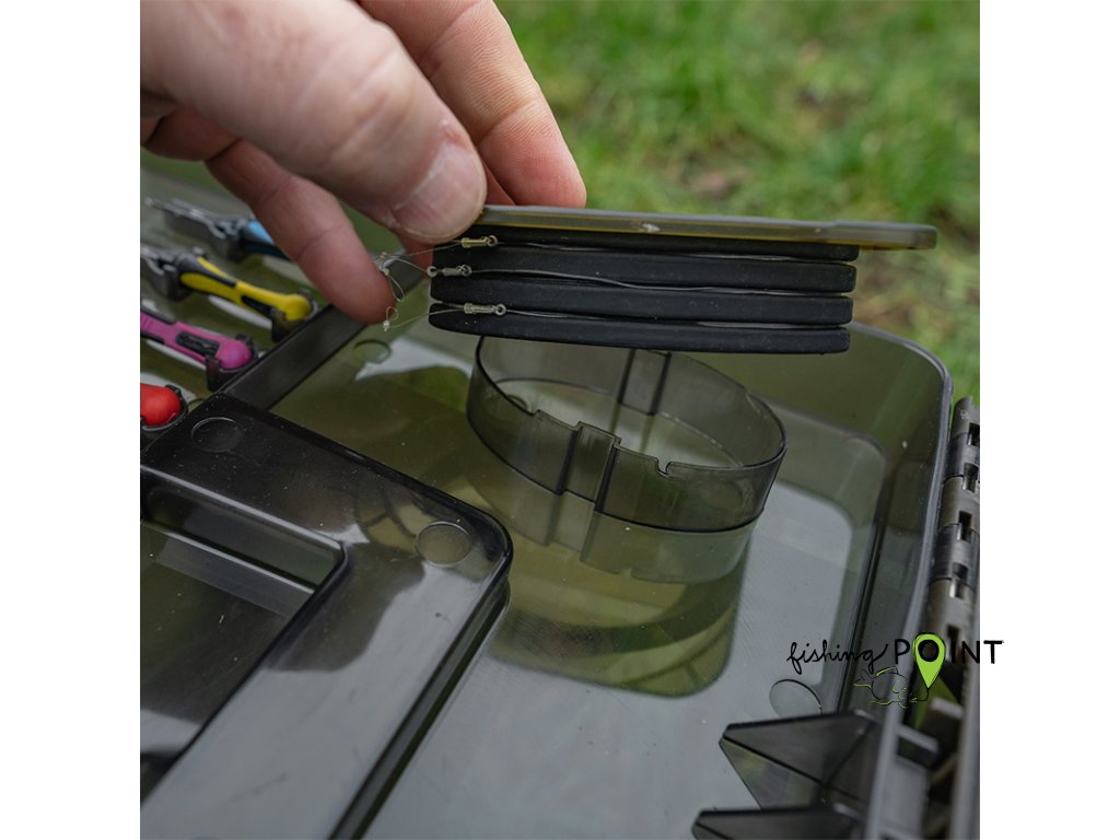 Ve víku jsou také umístěny dvě mělké schránky RIG BLOX, které uchovávají všechny vaše hotové návazce v bezpečí před povětrnostními vlivy.