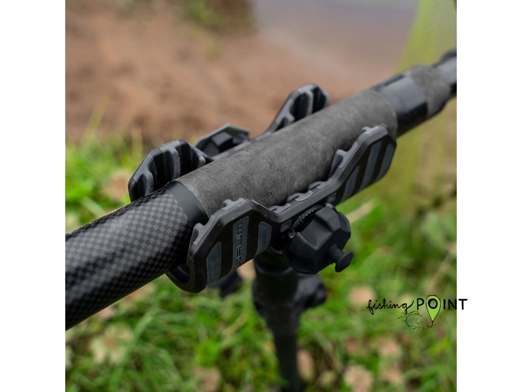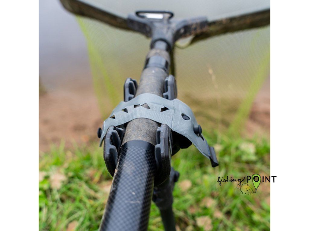 Díky nastavitelnému úhlu jej lze použít i na strmějších březích řek a svazích, zatímco velmi pevný upevňovací popruh udrží podběrákovou rukojeť bezpečně na svém místě. Měkké gumové části zajišťují přilnavost i za mokra. K dispozici je více poloh, které vyhovují různým podběrákovým rukojetím.