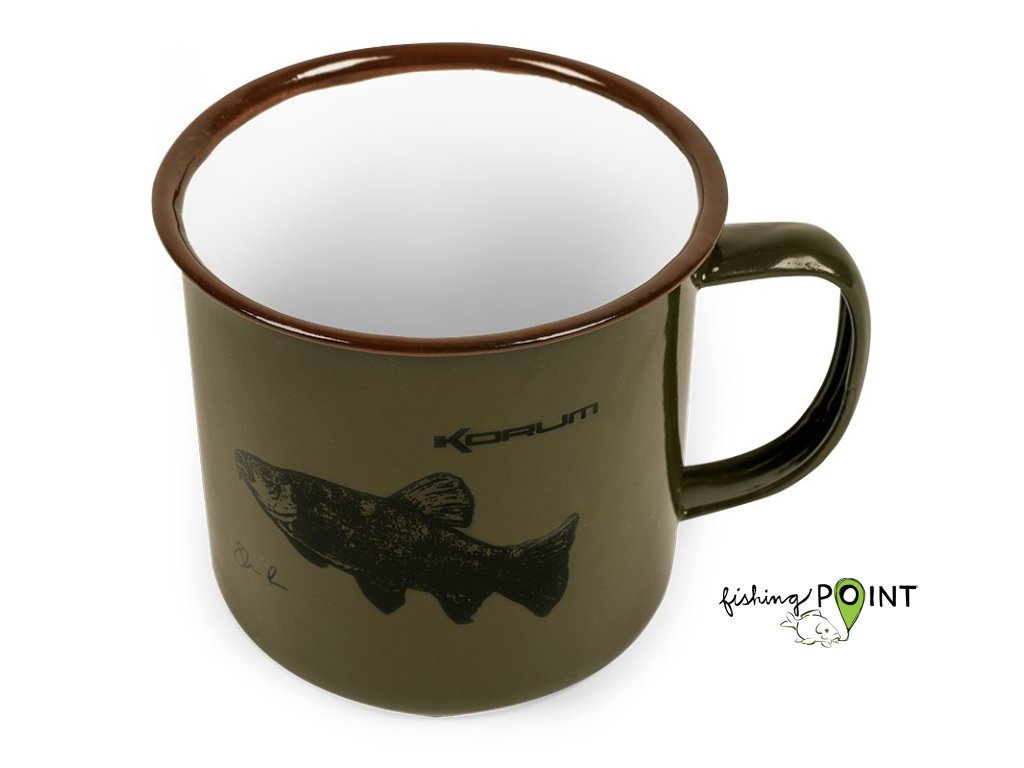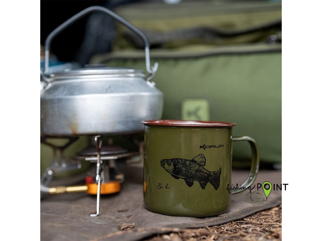 Smaltovaný hrnek s vyobrazením lína.Řada Korum Classic nabízí produkty, které jsou synonymem pro tradiční rybolov.