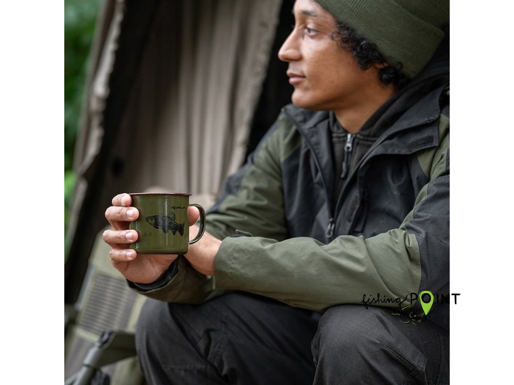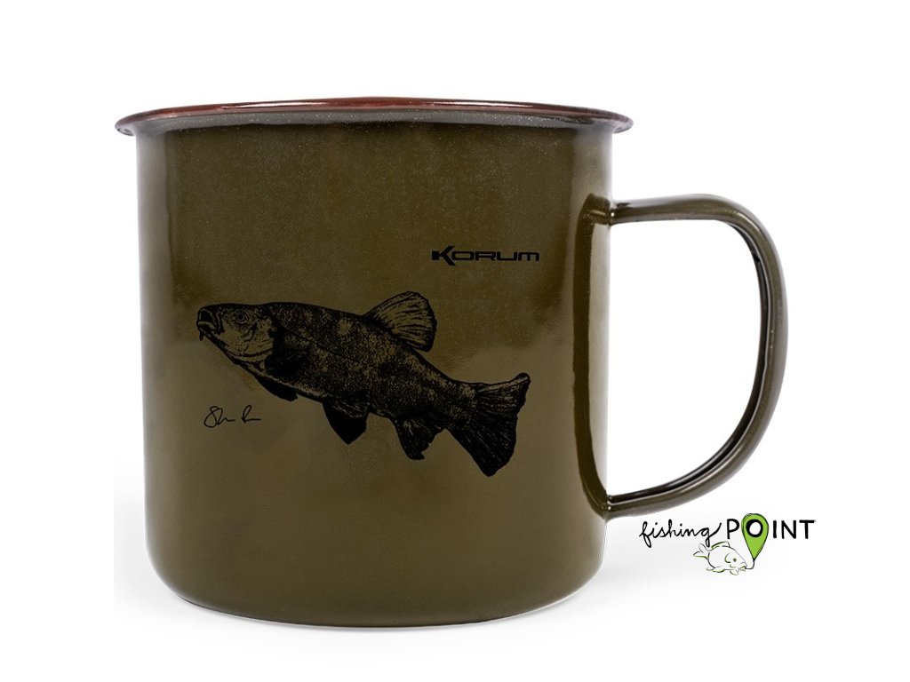 Smaltovaný hrnek s vyobrazením lína.Řada Korum Classic nabízí produkty, které jsou synonymem pro tradiční rybolov.