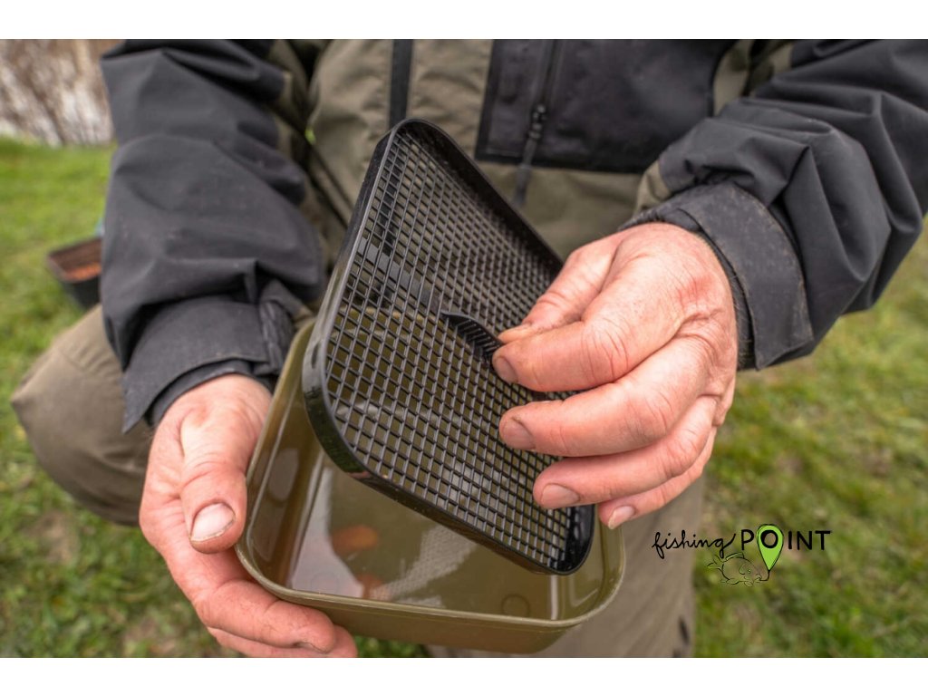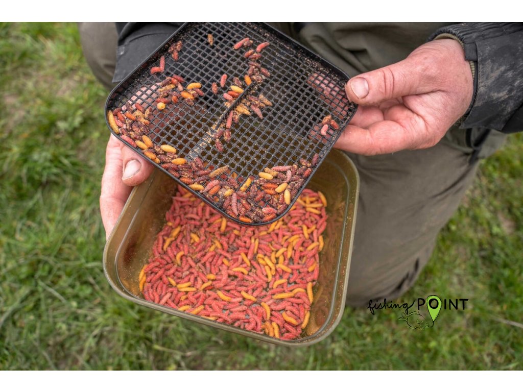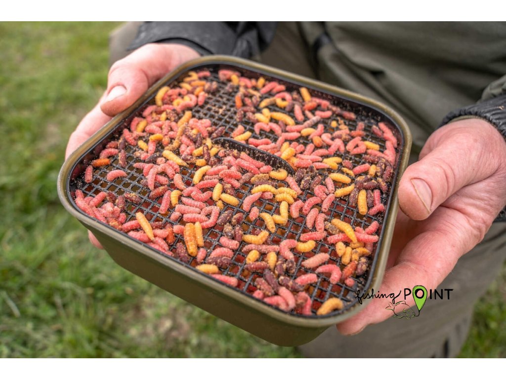 Dodává se s vlastním sítkem a prodyšným víkem pro delší udržení čerstvých nástrah.