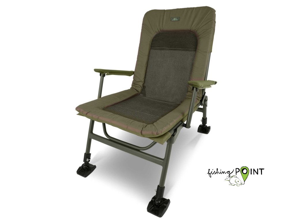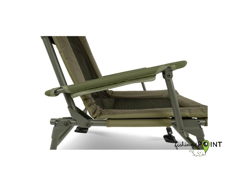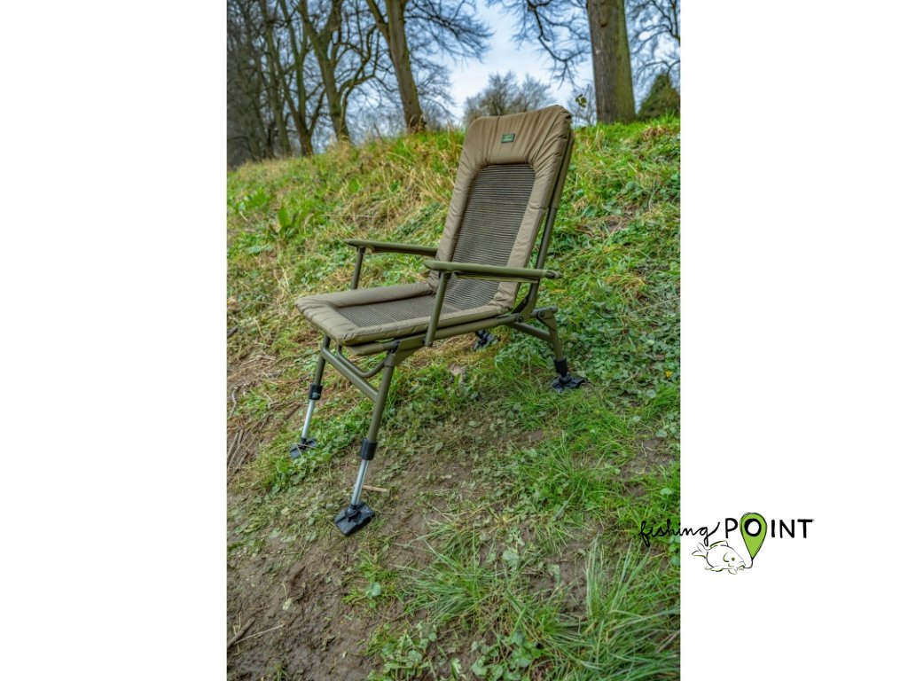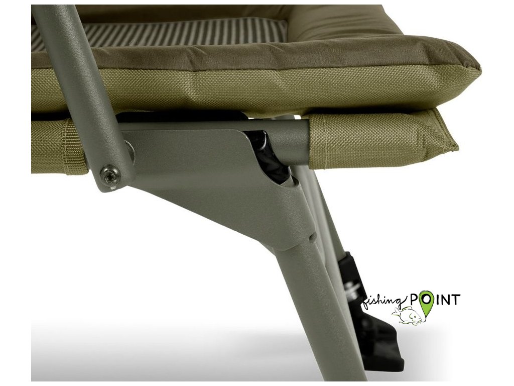 Model Deluxe je vybaven polstrovanými područkami a délky nohou byly upraveny tak, aby poskytovaly maximální dostupné prodloužení v přední části křesla, díky čemuž je tento model ideální pro strmější břehy.