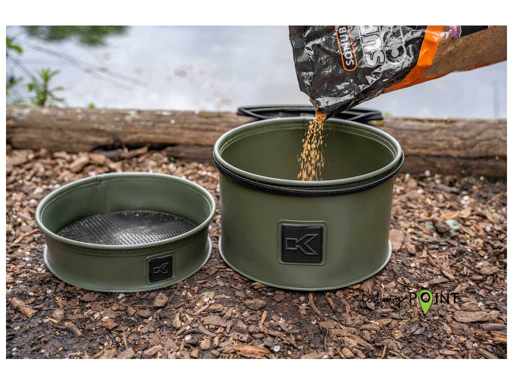 Naše vylepšená sada míchačky na krmení včetně nového svařovaného 3 mm síta s gumovými oky, které mají ideální velikost pro použití s krmením na velké ryby a přírodními nástrahami, jako jsou červi a žížaly. Včetně rukojeti pro přenášení. Vnitřní část je těsně zasazena do horní části, aby krmení a nástrahy mohly podle potřeby přirozeně procházet.