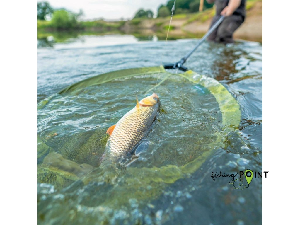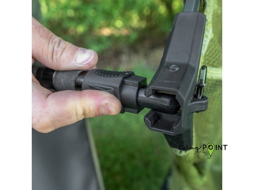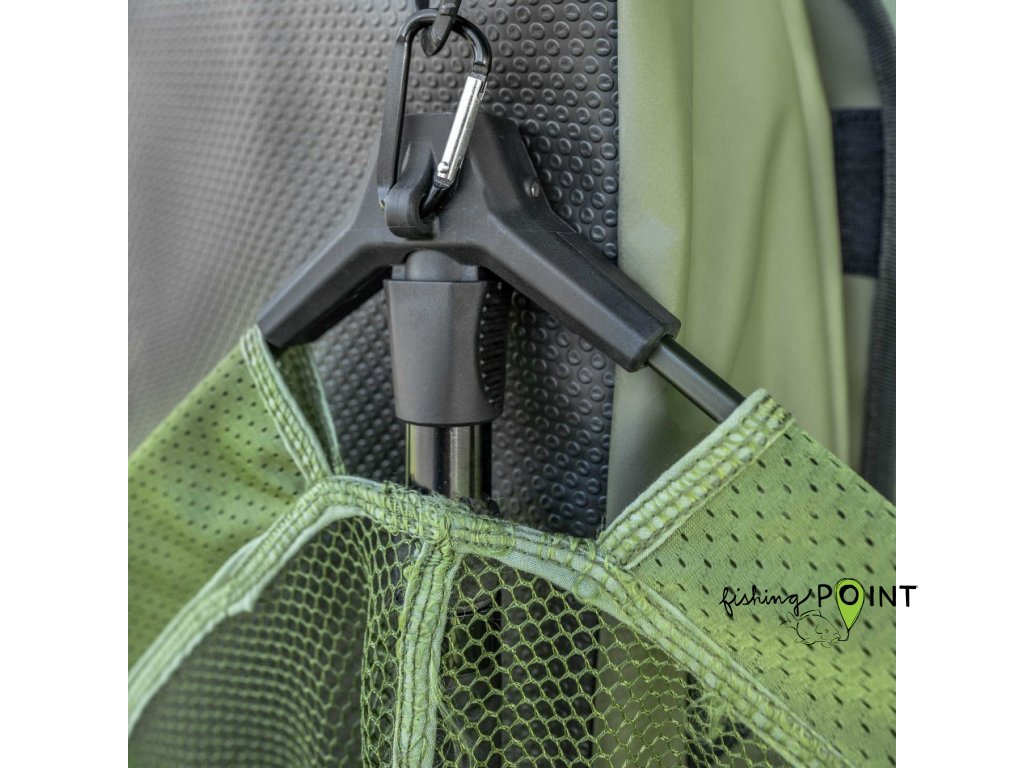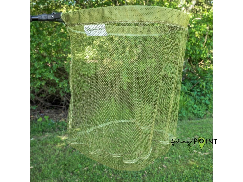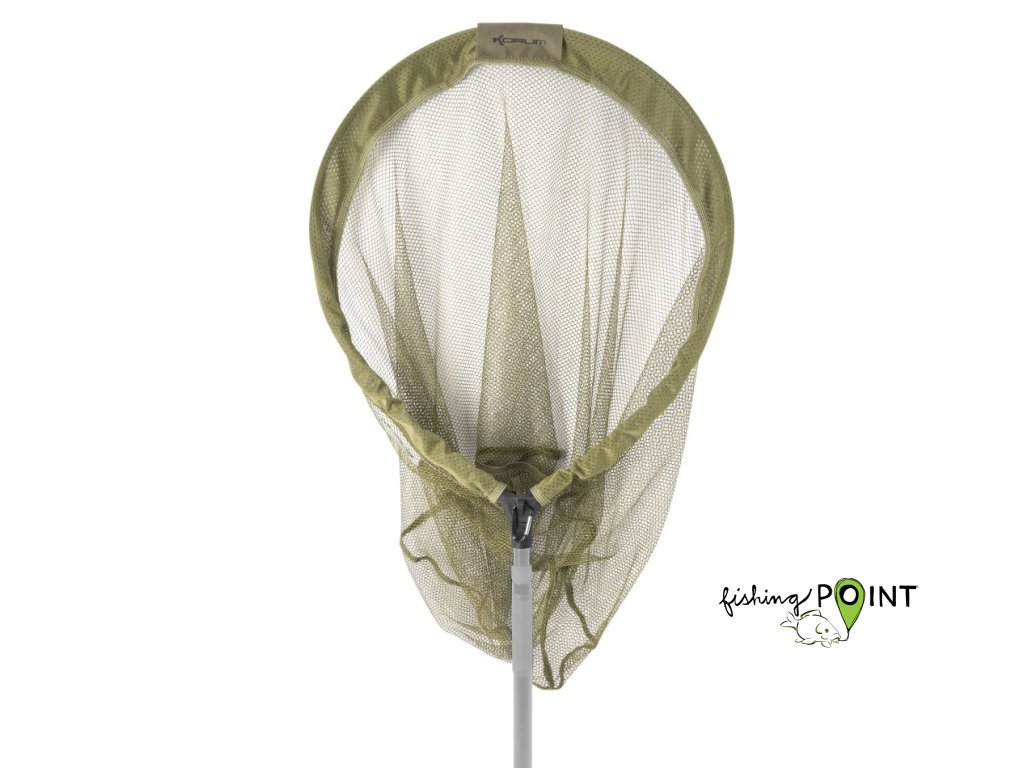 Pružinový mechanismus lze ovládat pouze palcem jedné ruky. Podběráková hlava může být použita s jakoukoli rukojetí s 3/8" závitem. Měkká síťka. Obvod z nylonu s logem Korum. Připojovací bod pro karabinu nebo magnety.