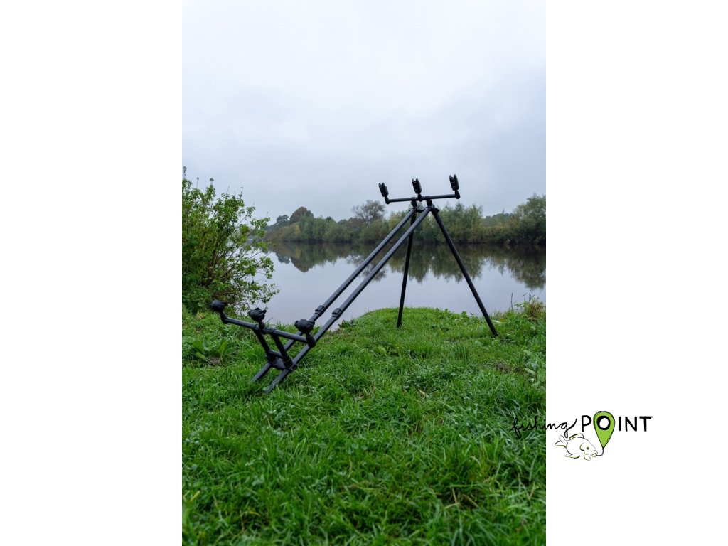 Nabízí maximální stabilitu a všestrannost. Dvojitý rám lze během používání prodloužit, ale díky vačkovým zámkům cam lock jej lze úhledně sbalit, takže je při přepravě kompaktní. Stojan je lehký a přenosný.Mohutné hrazdy na 3 pruty se připevňují pomocí vačkových spínačů pro rychlé sestavení a sbalení. Připevnění na dvou místech nyní dokonale odstraňuje jakýkoli pohyb nebo nevyváženost. Zadní hrazda je přizvednutá, aby umožnila dostatečný prostor pro snadné uložení tří velkých navijáků. Přední nohy lze nastavit do téměř libovolného úhlu a mají také možnost nastavení výšky pomocí vačkových spínačů. Nohy se prodlužují od 1 m do 1,85 m. Kompletní s jednoduchým obalem pro přepravu.