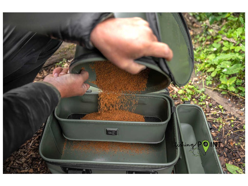 Obsahuje dvě vložky z nichž jedna je vybavena našim 3 mm sítem pro prosévání nástrah nebo krmení. Vložky jsou velikostně kompatibilní s naší řadou Blox a to včetně Bits Blox, Rig Blox, Speci Rig Blox a Float Blox. Velikost tašky zajišťuje, že pod vložky můžete umístit dvě 3pt vaničky s nástrahami nebo jen samostatně nástrahy, protože celá taška je voděodolná.