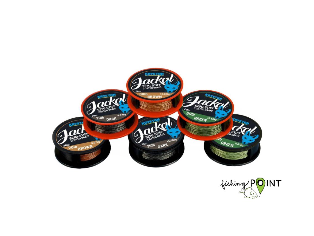 Jackal je vyroben nejpevnějšího vlákna současnosti. Tento super pevný a odolný návazcový materiál s úžasně malým průměrem snadno splní veškeré požadavky současné moderní kaprařiny. Jackal je nabízen ve třech barevných variacích, aby dokonale splynul s každým typem prostředí, stačí si jen vybrat ten správný odstínDíky unikátní svrchní vrstvě je velmi šetrný k rybám. Hladký a zároveň pevný obal šňůrky zabraňuje zamotávání a zároveň výrazně zvyšuje odolnost při tření o kameny, kořeny apod. Velmi nízký průměr Jackalu umožňuje velmi přirozenou prezentaci nástrahy. Alternativně je možné svrchní vrstvu odstranit a získat tím ještě větší škálu možností koncového návazce. Po odstranění vnější vrstvy zůstane vnitřní splétaná šňůrka, která je barevně sladěna s vnější vrstvou a vytváří tak dokonalou kamufláž.