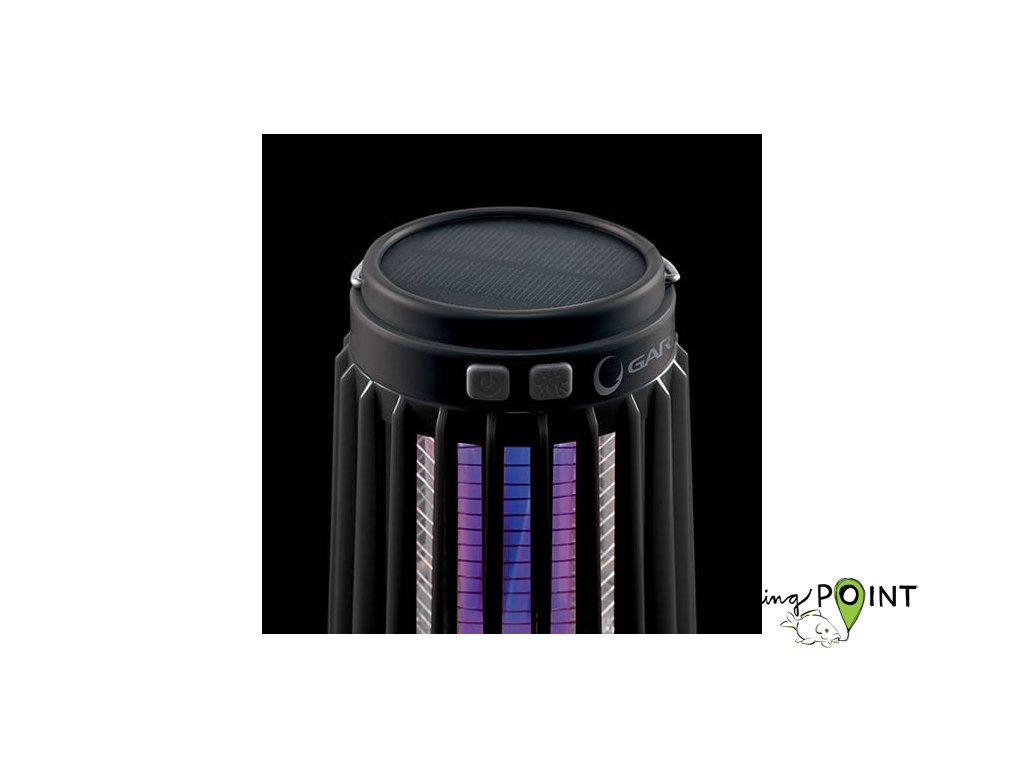Lampa na hubení komárů, které přitahuje, zachycuje a zabíjí. Lampu lze dobíjet přes USB kabel nebo přes vestavěný solární panel.