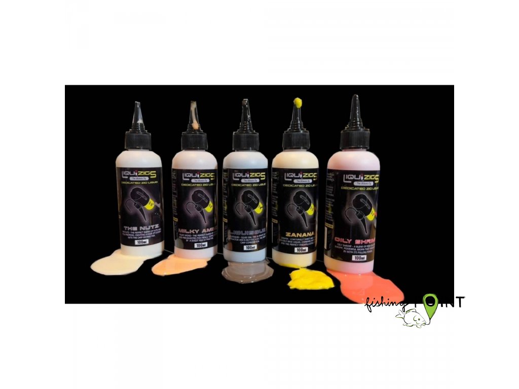 Liquirigs – Liquid Zig jsou zcela nové patentované a originální systémy na lov ryb ve sloupci a nade dnem. Unikátní design, kompatibilita, jednoduché použití a efektivita nástrahy i bez zakrmování, to jsou hlavní výhody Liquid Zig.Liquid Zig Booster je originální speciálně vyvinutý atraktant firmy Liquirig v 5ti různých barvách a příchutích. Dokonalý mix lehčích a těžších tekutých, ale i sypkých složek zajišťují postupné uvolňování po dobu delší než 1 hodina. Výsledný mix ne jabíc neutrálně vyvážený, tzn, že neklesá ke dnu, ale šíří se v okolí nástrahy, což dokonale láká ryby. V boosteru jsou použity pouze přírodní barviva a esence na alkoholové bázi v těchto variantách:Milky Amino – perfektní mix amino kyselin a enzymatických mouček, doplněné sladkými a mléčnými tónyZanana – přírodní sladký tekutý blend, skvěle rozpustný se štiplavým ananasovým aromaLiquidsquid – černý olihňový inkoust s esencí a EO n-butyric acid, perfektní kombinace The Nutz – mix mléčných a ořechových atraktantů, vytvářejích sladký mrak, který kapři milují Oily Shrimp – Mix rybích olejů a živočišných extraktů s výrazným aroma krevetSystém Liquid Rig se skládá ze tří částí, které jdou libovolně měnit, kombinovat, či odebírat – montáž s rovnátkem, plovoucí pěna a kapsle na naplnění boosterem.Hlavní a zásadní výhoda oproti konkurenčním montážím je kapsle, do které lze nalít originální Liquid Zig Booster, esenci, plasmu nebo dip a tekutina se pak postupně uvolňuje do okolí nástrahy. Pokud chcete, aby se tekutina uvolňovala pomaleji, můžete použít plovoucí pěnu, která tekutinu vsákne a uvolňuje ji postupně. Tip_ Do kapsle s tekutinou se dá vložit i živý červík, který svým pohybem tekutinu postupně vytlačuje z kapsle ven.Doplňkové parametry