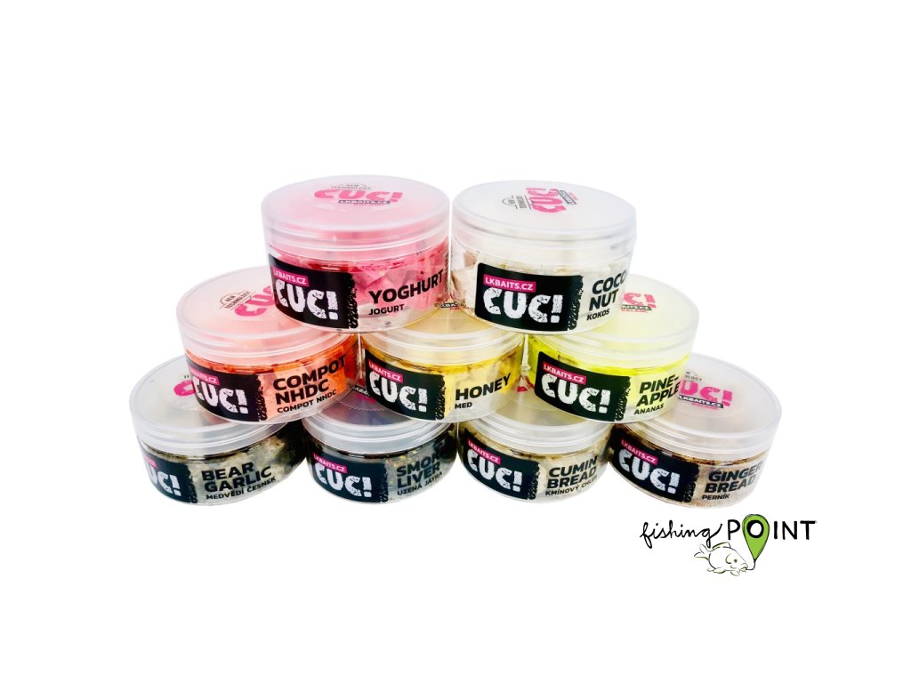 CUC! je produkt, který je primárně vyvinut pro zvýšení počtu záběrů a je atraktivní pro chytání téměř všech druhů kaprovitých ryb nehledě na velikost ryb. S touto nástrahou můžete cílit na kapra, cejna, bílou rybu, lína nebo také na parmy, jesetery a další ryby. CUC! se vyrábí ve vybraných příchutích, kde vždy název nese přírodní zastoupení použité ingredience. Tzn. pokud používáte například patentku, můžete si být jistí, že hlavní zastoupenou surovinou je skutečná patentka, podobně je tomu u gammarusu a dalších masových příchutí. U ovocných příchutí je použito mixované ovoce, ovocné koncentráty, extrakty a výraznější barvy, které jsou výhodou při chytání v čistších vodách. U kořeněných bází bylo použito přírodní koření a přírodní silice, které si sami destilujeme. Specialitou je určitě náš kmínový chléb, který má úžasné vlastnosti, které u pečiva při rybaření postrádáte.
