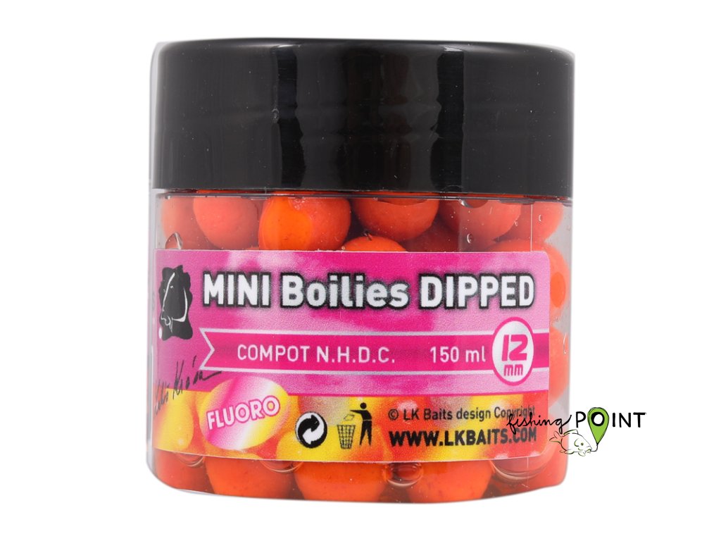 LK Baits Mini Boilies in Dip 12mm 150ml Compot N.H.D.C Fluoro