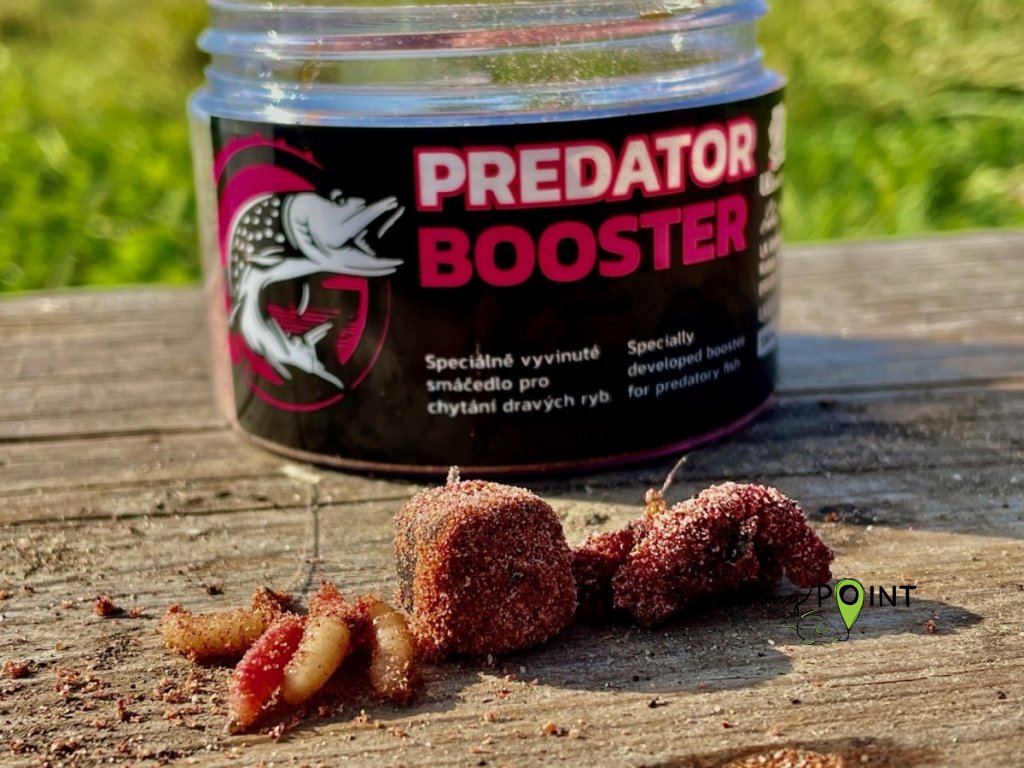 Speciální práškový booster vyvinutý pro zvýšení počtu záběrů všech dravých i kaprovitých ryb. Booster je složen z celé řady přírodních látek, jehož základem je rybí extrakt a specifický signál navozující zraněnou rybku, který je pro dravé ryby velmi dobře znám. Bakteriálním procesem - rozkladem přírodní hmoty, jsme také navodili důležitý potravní signál, s kterým se dravé ryby přirozeně setkávají v případě uhynulé rybky nebo jiného živého organizmu. Booster práškový Predátor má vysokou přilnavost k nástraze a po vhození do vody dochází k okamžitému šíření atraktantů do okolí. Testováním bylo prokázáno, že použitím naší tekutiny zvýšíte počet záběrů až na pětinásobek oproti nástrahám, kde Booster Predator použit nebyl. Použití: Nástrahu (žížala, červ, nugeta, nutrigo, rybička atd.) doporučujeme vymáchat v dipu Predátor (pokud nemáte – použijte vodu) a obalte v dipu. Atraktant je vyvinut tak, aby na nástraze vydržel a tvořil v okolí velmi atraktivní stopu. Booster Predátor byl pro objektivnost účinku testován, jak na stojatých vodách, tak i řekách s velmi dobrými výsledky.Doplňkové parametry