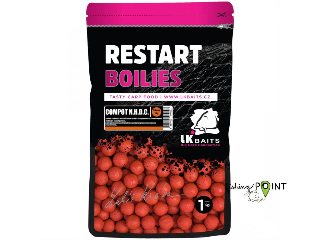 Boilie Restart Compot NHDC - První druh boilie, které je v sortimentu LK Baits poprvé. Neobsahuje ani gram rybí moučky, ptačího zobua jeho kabát (barva) je extra extravagantní :-) Ano taková je naše oranžová, sladká, chytlavá kulička. Prostě bonbónek. Boilie vhodné k celoročnímu použití.Doplňkové parametry