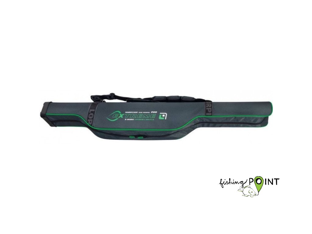 Taška na pruty Lorpio Extreme Match Pro - Díky speciálně navrženému vnitřnímu pouzdru pojme taška 3 rybářské pruty s navijáky, přičemž zachovává šířku standardní tašky na 2 pruty. Vnitřní pěnové přepážky a suché zipy chrání nejen pruty a navijáky, ale i vlasec a sestavu se splávkem nebo feederem. Kryt má také jednu vnější přihrádku na příslušenství. Tvrdé, snadno čistitelné dno chrání před vlhkostí, když kryt umístíte svisle.Doplňkové parametry