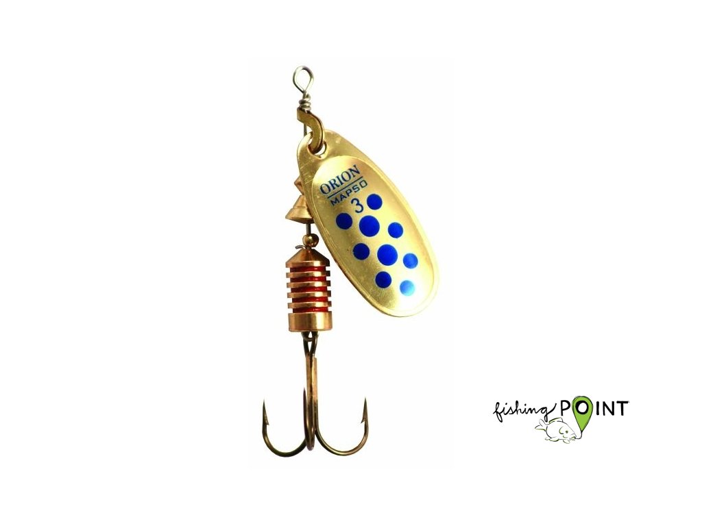 Klasický model rotační třpytky Mapso Orion. Třpytky můžete, díky rotaci křidélka pod úhlem 60 stupňů použít i v mělké a zarostlé vodě. Vyznačuje se velmi kvalitním chodem v proudu i proti proudu.