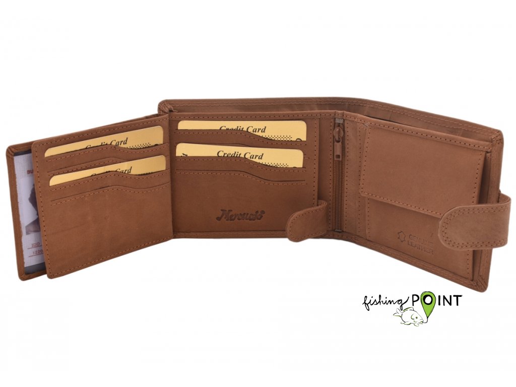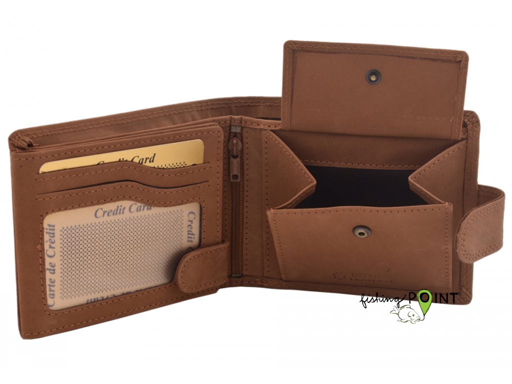 Oblíbená pánská peněženka se zapínáním na šířku je jeden z klasických modelů s praktickým vnitřním členěním. Zejména díky tomuto vnitřnímu členění je peněženka top modelem mezi peněženkami se zapínáním. Vnitřek nabízí až 9 přihrádek na karty, jakož i průhledné přihrádky vhodné pro uložení fotek nebo dokladů s fotkami. Nedílnou součástí je i kapsa na mince, která se nachází uvnitř, hned vedle zipové přihrádky.Členění peněženky:- 9 přihrádek na karty- 3 průhledné přihrádky na fotky nebo doklady- 2 vnitřní univerzální přihrádky- 1 velký mincovník- 1 zipová složka- 2 přepážky na bankovkyRozměry: 12,5 cm x 10 cm x 3,5 cm