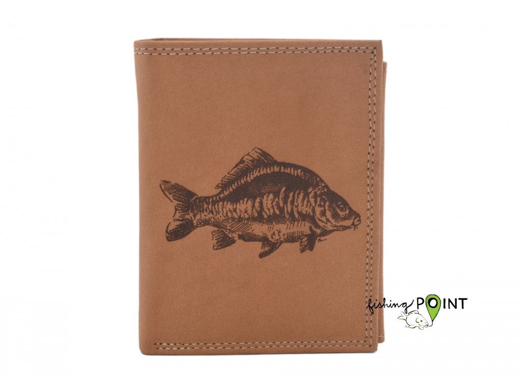 Šikovný model pánské kožené peněženky je dostupný v několika barevných variacích, ale jednoznačně nejoblíbenější je světle hnědá barva, která s sebou nese i několik desítek laserových nebo embosovaných vzorů. Tento model patří do kategorie klasické kožené peněženky orientované na výšku s vnitřním zapínáním. Obsahuje několik složek na karty a doklady. Samozřejmě nesmí chybět ani přihrádky na bankovky a velký mincovník. Obvod peněženky je příjemně a nerušivě zdoben obšitím.Členění peněženky:- 8 přihrádek na karty- 2 průhledné přihrádky na doklady- 2 vnitřní univerzální přihrádky- 1 zipová složka- 1 velký mincovník- 2 složky na bankovkyRybářské vzory jsou spolu s mysliveckými jednoznačně nejoblíbenějšími ve své kategorii. V nabídce jsou peněženky a obaly na doklady s laserovými nebo embosovanými designy od výmyslu světa. V nabídce jsou různé druhy ryb, například kapr, candát, sumec nebo pstruh, jakož i různé rybářské vzory, jako například lesnice, rybář, rybaření, a mnoho dalších. Všechny laserové vzory jsou dodávány u nás ve skladu laserovým vypalováním do kůže peněženky, zatímco embosované vzory jsou vtiskovány do kůže při výrobě peněženky. Všechny laserové a embosované peněženky jsou vyrobeny z hovězí kůže v úpravě HUNTER.Tato peněženka je vyrobena z hovězí kůže v úpravě hunter a je velmi populární u lidí, kteří mají rádi rustikální a přírodní styl. Kůže je zpracována a barvena podobným způsobem jako semiš, a tedy zachovává si poněkud drsný povrch. Jednou z typických vlastností pro peněženky z kůže hunter je to, že aktivním používáním se díky olejovému základu vytvoří patina, což znamená, že peněženka přirozeně ztmavne. Samozřejmou součástí tohoto typu kůže je její nedokonalý charakter, díky kterému je každá jedna peněženka odstínově unikátní, a tudíž je velmi obtížné zachytit jeden univerzální odstín nebo dokonce dokonalý povrch bez přirozených „fleků".Doplňkové parametry