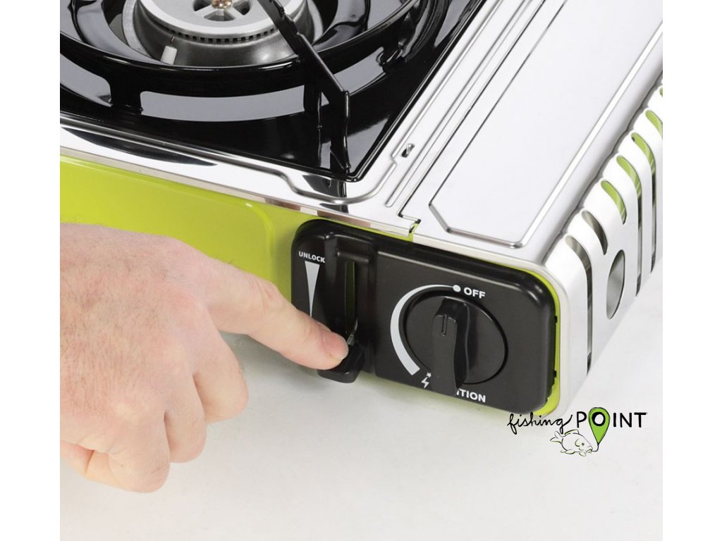 Přenosny vařič určeny pro venkovni použiti v praktickém plastovém kufříku pro snadný transport a ochranu vařiče před poškozením.Zavětrovací deska je vyrobena z nerezavějící oceli,což zajišťuje její dlouholetou životnost a zároveň je vařič velmi snadný na údržbu.Vařič splńuje nejpřísnější Evropská kritéria v oblasti bezpečnosti,je vybaven pojistkou proti přehřátí kartuše,která v případě zvýšení teploty kartuše nad bezpečnou mez automaticky kartuši odpojí od systému.Ovládací knoflík je vybaven aretací v nulové poloze, což zabraňuje úniku plynu způsobenému neopatrnou manipulací.Je také zvýšeno odvětrávání prostoru kartuše o více jak 50%.Použiva jednorazove ventilove kartuše (UKP02002).Délka : 370 mm