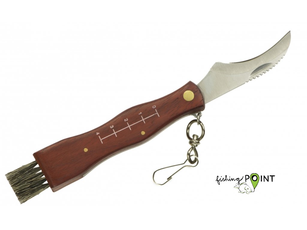 Nůž houbařský s pevnou čepelí z nerezové oceli se štětečkem.
