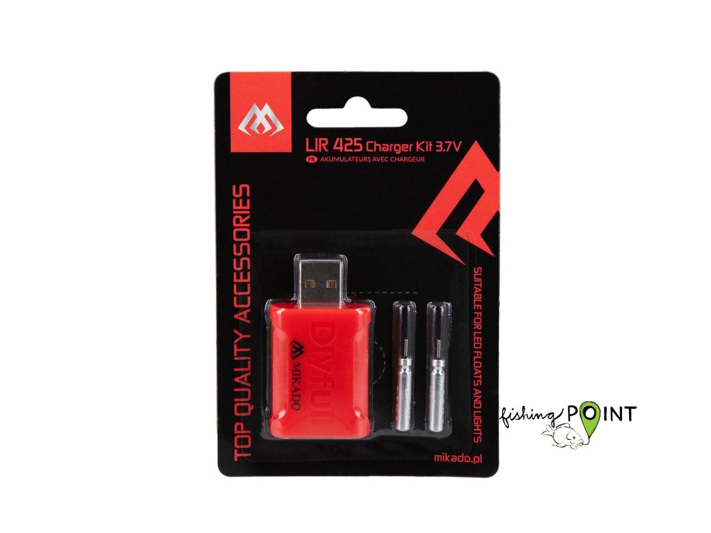 Sada, která obsahuje dvě baterie LIR425 a USB nabíječku.Baterie se hodí do LED splávků a koncových světel. Určeno pro všechny produkty Mikado ze sérií SMP-LED a IAIE.