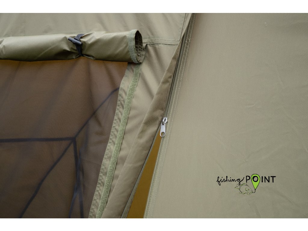 Pohodlně pojme 2 lehátka a vybavení. Má zadní větrací okénko a podlážku na suchý zip pro lepší ventilaci a komfort.