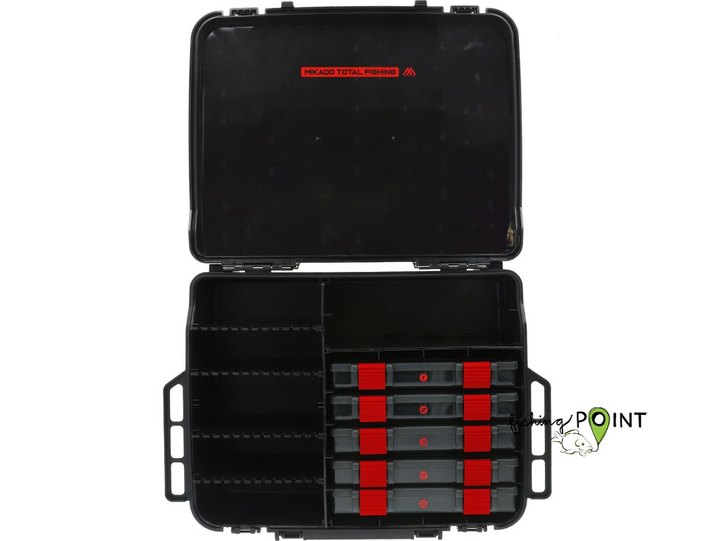 Kvalitní velká krabička se dvěma přihrádkami. Obě přihrádky mají modulární stěny a jsou vyrobeny z odolného plastu. V sadě je 5 krabiček na příslušenství. Silné západky typu flip zajišťují bezpečné uzamčení, zatímco pohodlná rukojeť usnadňuje přepravu.