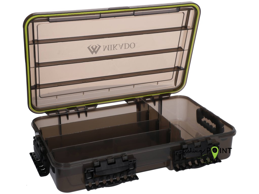Jednostranné, 100% vodotěsné, černé rybářské boxy s těsněními. Dolní oddíly byly vybaveny speciálně vyříznutou pěnou. Mají také klasické nastavitelné přihrádky bez pěny pro uložení nejrůznějších nástrah.Doplňkové parametry