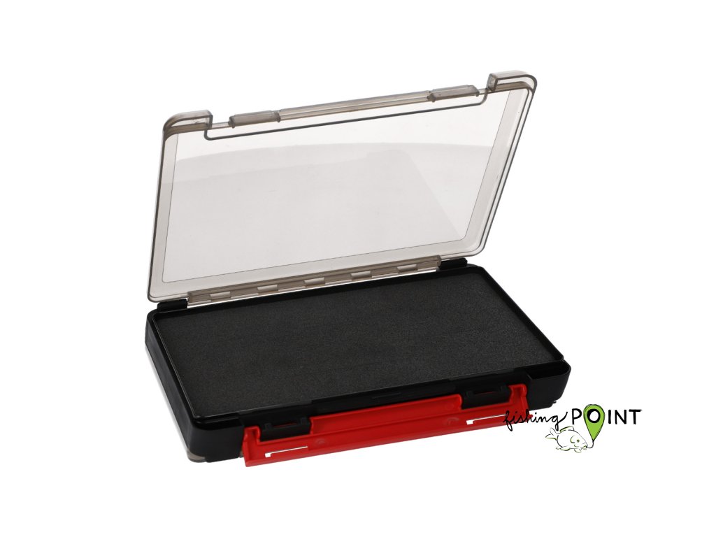 Oboustranný rybářský box vyrobený z kvalitního plastu s bezpečným uzavíráním. Vybavený houbičkou na jedné straně a klasickými plastovými přihrádkami na straně druhé. Ideální pro rotačky, woblery, třpytky a cikády.