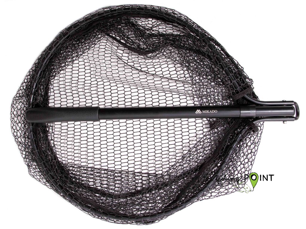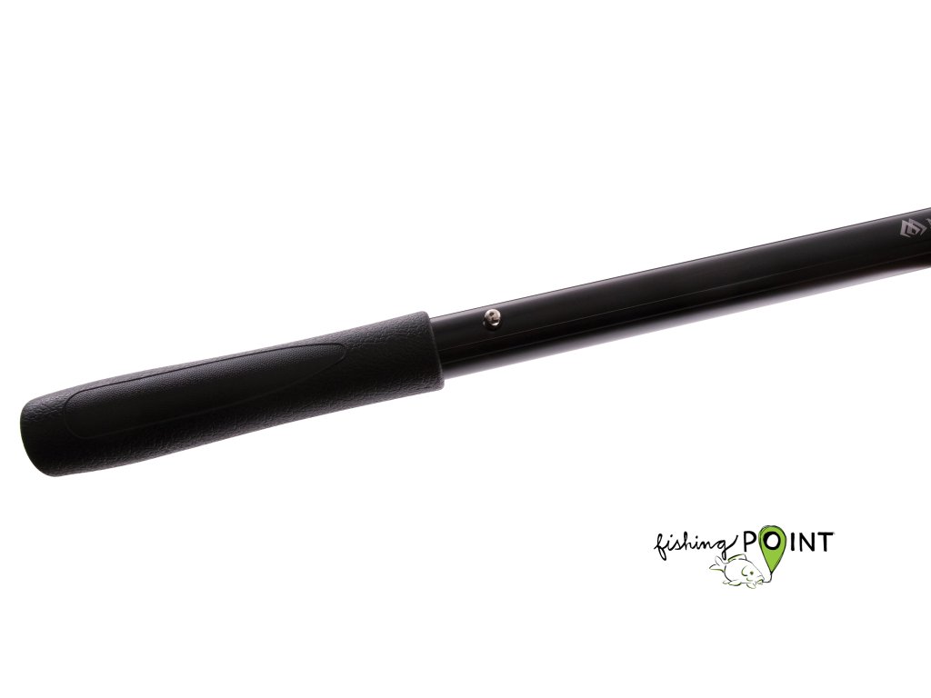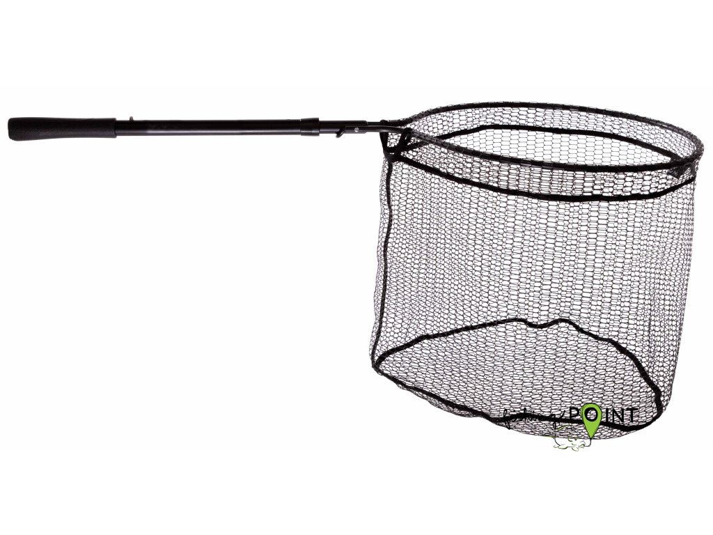 Podběrák s pogumovanou síťovinou a automatickou výsuvnou rukojetí, která umožňuje okamžité prodloužení dosahu podběráku o dalších 30 cm.