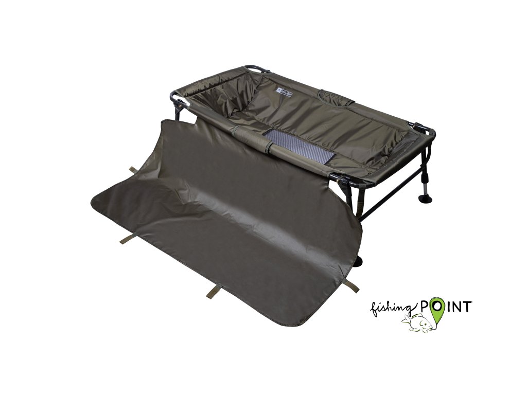 Mimořádně pečlivě vyrobená kaprová podložka s 4 nastavitelnými nohami, odtokem vody, víkem a přepravním vakem. Zesílený rám a zvětšené rozměry jsou ideální pro velké kapry.