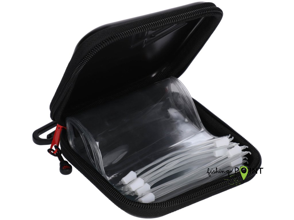 Pevné pouzdro vybavené sáčky na zip efektivně organizuje drobné příslušenství, návazce a malé nástrahy. Přidaná karabina umožňuje připevnit pouzdro na brašnu nebo opasek.