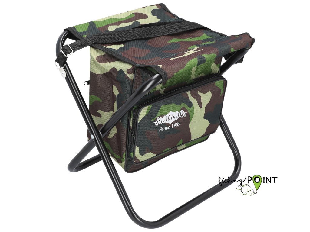 Mikado STOLIČKA - SKLÁDACÍ S BATOHEM (max w. 100kg) (40x38x31cm) - KAMUFLÁŽ - 1 ks