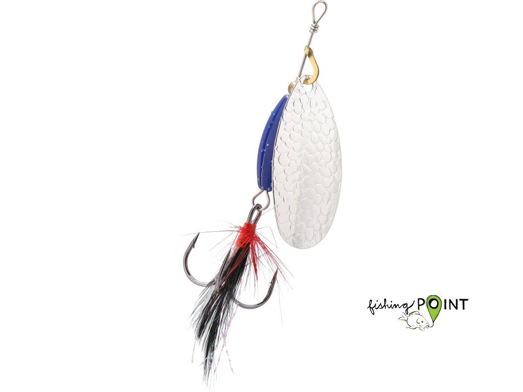 Rotační třpytka se širokým křidélkem a s těžkým, barveným tělem, které umožňuje prolovovat i ty nejméně přístupné místa a tůně v korytě řeky. Střapce zvyšují atraktivitu a četnost záběrů.