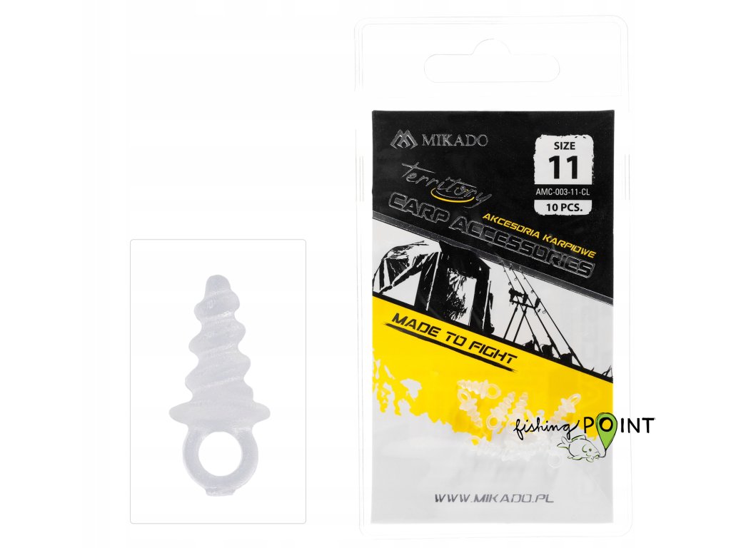 Pop up Screws - tato speciální novinka od firmy MIKADO Vám usnadní práci. Pop up Screws, vám umožní rychle a efektivně nastražit pop up boiles. Šroub je vyroben ze speciálního plastu, který pevně drží v návnadě. Použití je jednoduché, šroub zašroubujete do pop up boilies a kroužek provlečete přes oblouček háčku. Nakonec to zajistíte stoperem. Ideální i pro použití s umělými nástrahami na Zig Rig. Ve dvou barevných provedeních, fluo žlutá a čirá . V balení 10 ks.
