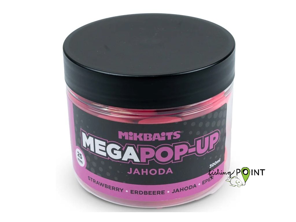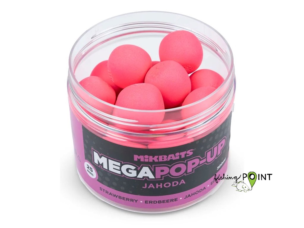 Mikbaits Mega fluo pop-up 300ml - Jahoda 25mm