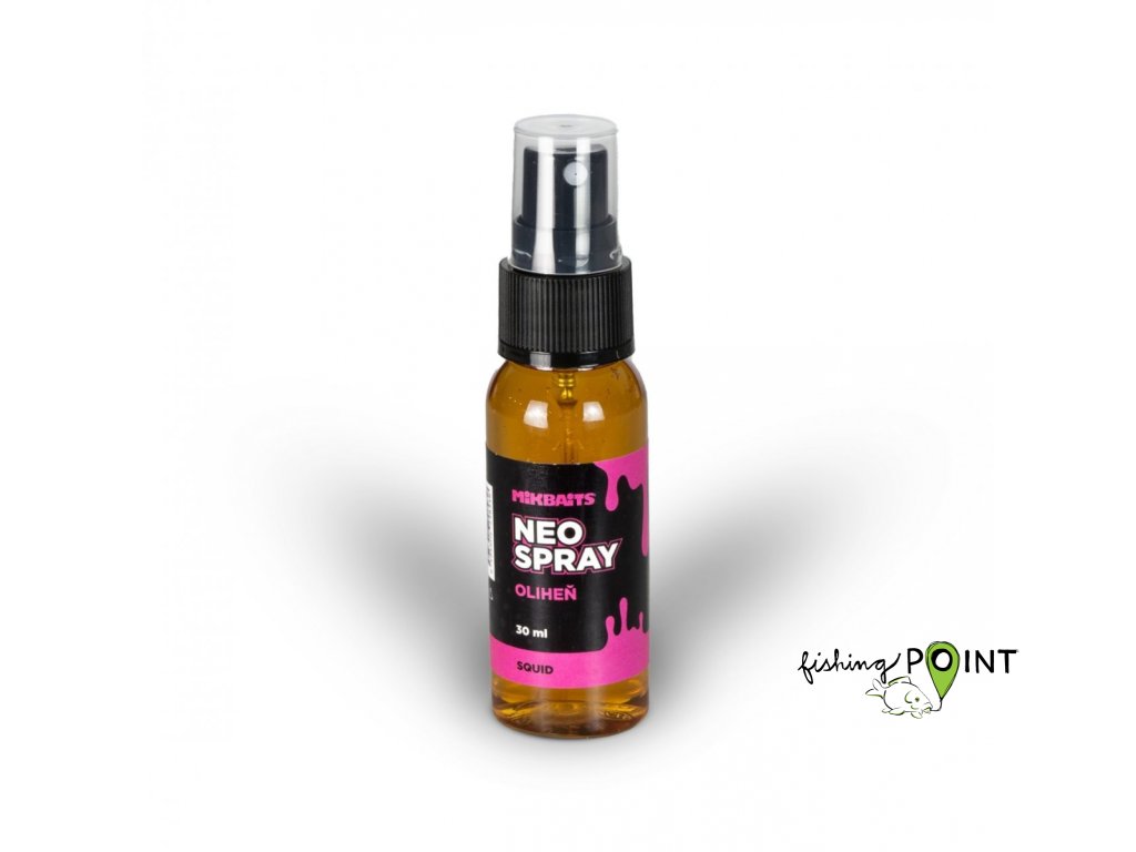 Neo spray je vysoce koncentrovaný tekutý postřik, kde jsou krom esence i koncentrovaná sladidla a chuťové stimulátory. Je určený zejména na zatraktivnění Fluo pop-up, Ronnie pop-up, pěnových Zig-up. Lze s ním i oživovat starší nástrahy. Neo spray je okamžitě nastartuje do původního stavu. Stačí zlehka postříkat a nechat v kelímku alespoň desítky minut absorbovat. Neo spray lze použít i na jiné nástrahy, jako je standardní boilie, pelety, partikl, rohlíkové boilie, extrudy a další. V těchto případech stačí nástrahu postříkat krátce před náhozem a nechat zlehka zaschnout.