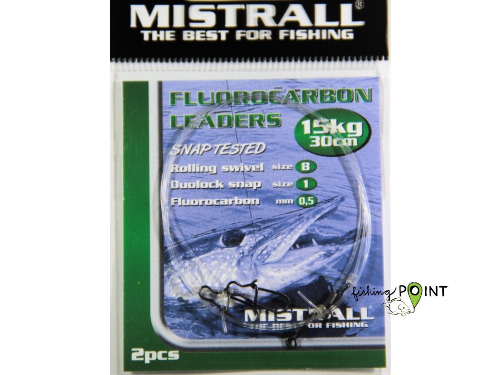 Kvalitní florocarbonové návazce určené k lovu dravců. Návazce jsou opatřeny obratlíkem a karabinkou. Balení obsahuje 2 ks návazců.tl. fluorocarbonu - 0,5mm