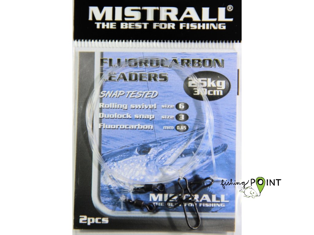 Kvalitní florocarbonové návazce určené k lovu dravců. Návazce jsou opatřeny obratlíkem a karabinkou. Balení obsahuje 2 ks návazců.tl. fluorocarbonu - 0,65mm
