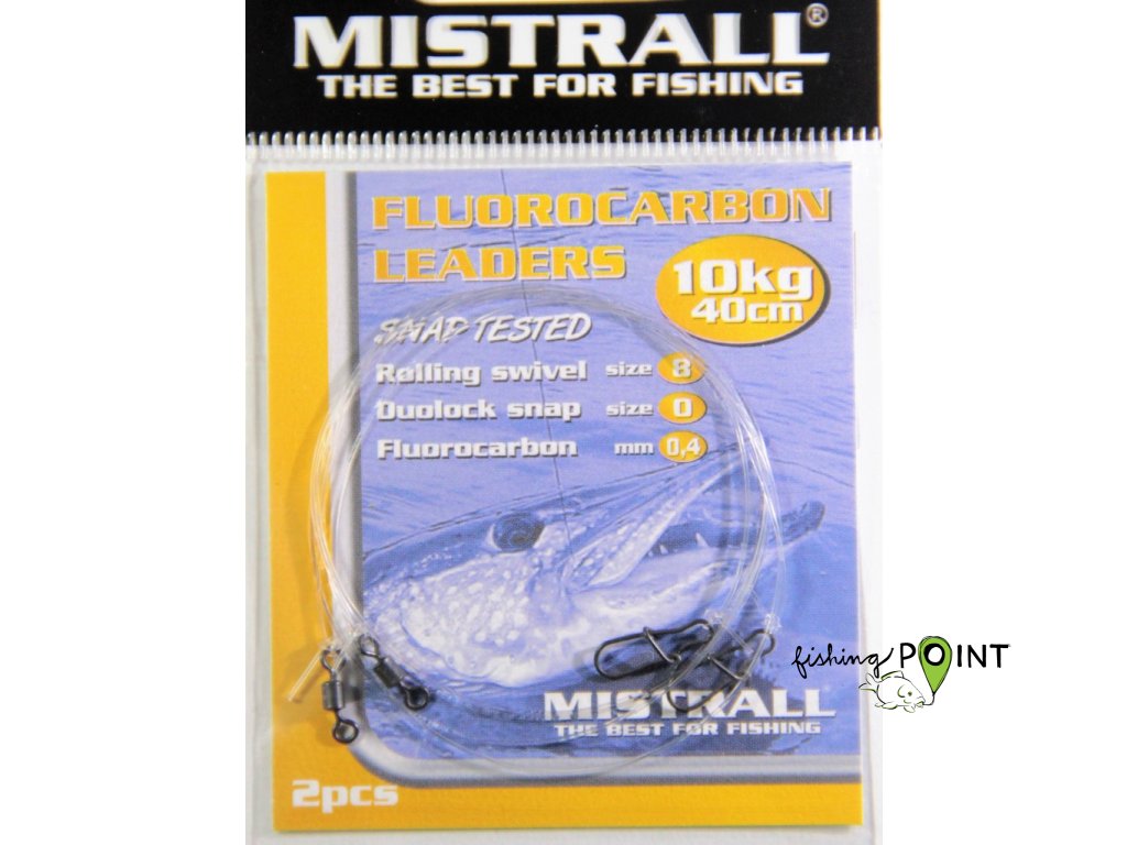 Kvalitní florocarbonové návazce určené k lovu dravců. Návazce jsou opatřeny obratlíkem a karabinkou. Balení obsahuje 2 ks návazců. tl. fluorocarbonu - 0,4mmDoplňkové parametry
