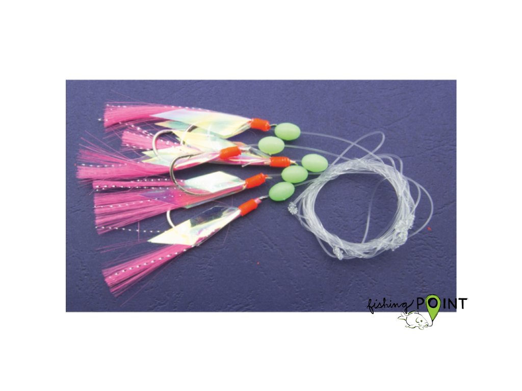 Makrelové systémy jsou vyrobeny z vlasce o průměru 0,6 mm nebo 0,45 mm podle konkrétního vzoru. K dispozici jsou také různé typy háčků. Tyto přívěsky se vyznačují pestrou barevností – na výběr jsou varianty s peřím, střapcem nebo krevetou. Všechny jsou vybaveny zelenými korálky.