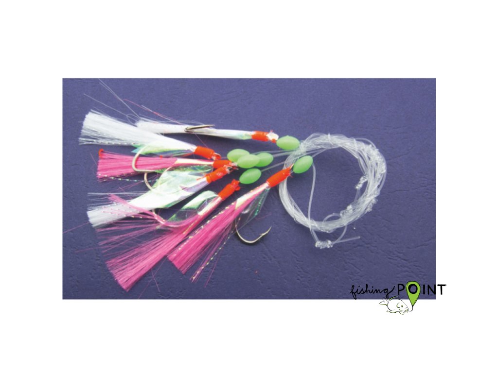 Makrelové systémy jsou vyrobeny z vlasce o průměru 0,6 mm nebo 0,45 mm podle konkrétního vzoru. K dispozici jsou také různé typy háčků. Tyto přívěsky se vyznačují pestrou barevností – na výběr jsou varianty s peřím, střapcem nebo krevetou. Všechny jsou vybaveny zelenými korálky.