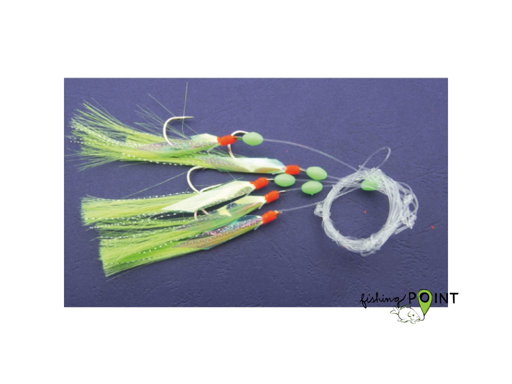 Makrelové systémy jsou vyrobeny z vlasce o průměru 0,6 mm nebo 0,45 mm podle konkrétního vzoru. K dispozici jsou také různé typy háčků. Tyto přívěsky se vyznačují pestrou barevností – na výběr jsou varianty s peřím, střapcem nebo krevetou. Všechny jsou vybaveny zelenými korálky.