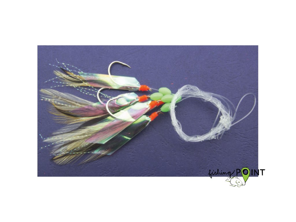 Makrelové systémy jsou vyrobeny z vlasce o průměru 0,6 mm nebo 0,45 mm podle konkrétního vzoru. K dispozici jsou také různé typy háčků. Tyto přívěsky se vyznačují pestrou barevností – na výběr jsou varianty s peřím, střapcem nebo krevetou. Všechny jsou vybaveny zelenými korálky.